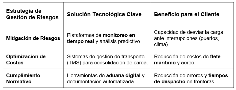 - Gestión de Riesgos Geopolíticos: La necesidad de planes de contingencia ante cierres de rutas o cambios arancelarios repentinos.